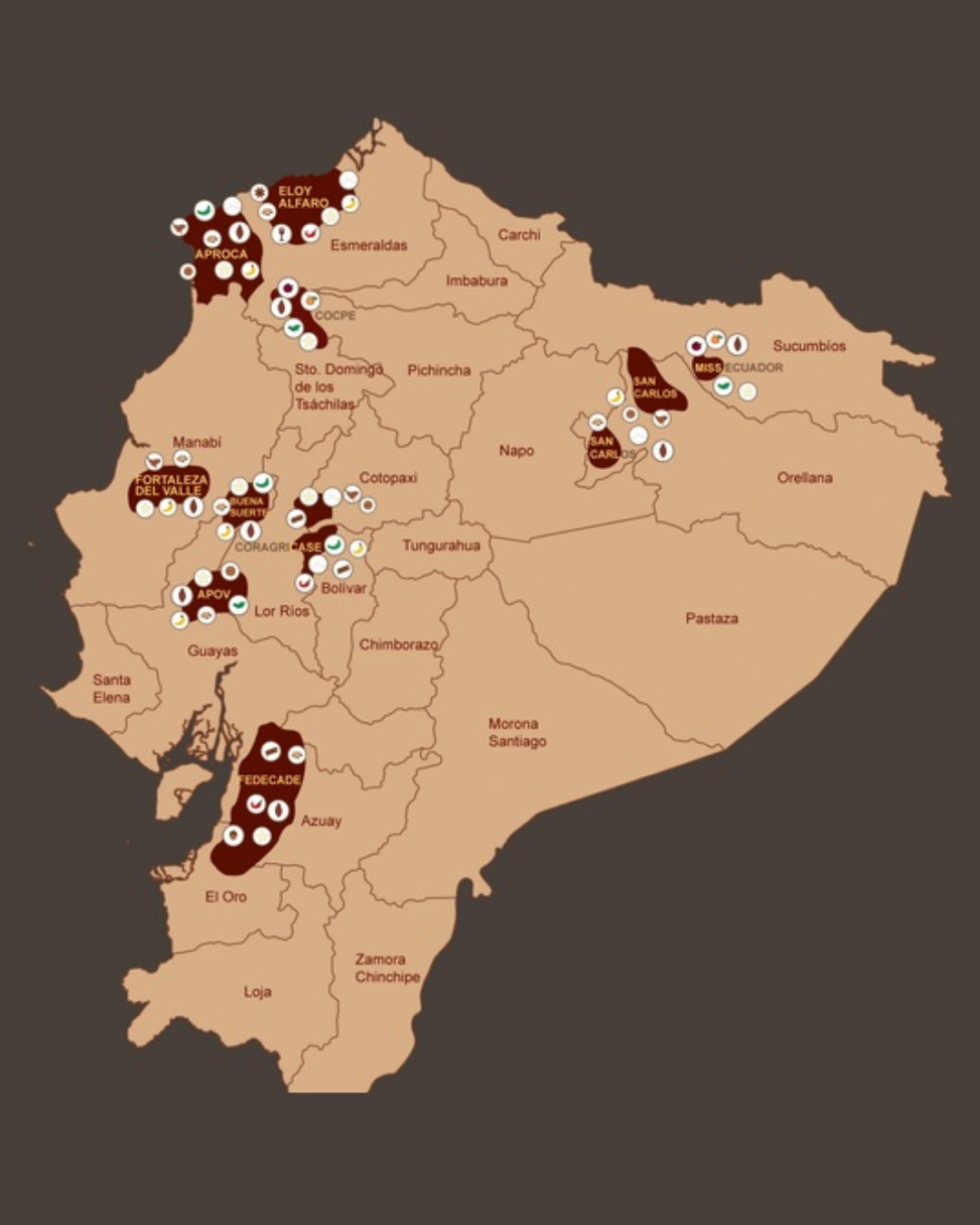 We work hand in hand with farmers’ organizations and associations across 10 provinces of Ecuador, bringing together more than 1,500 producers who cultivate over 6,000 hectares of fine-flavor Nacional cacao. These farmers receive fair treatment and adequate prices for their work, while also participating in awareness programs and community support initiatives promoted by the factories that process the product. In this way, we ensure not only the quality of the cacao but also the well-being and development of the communities dedicated to its cultivation.